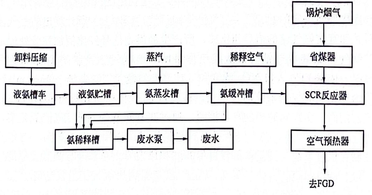 脫硝后煙氣經(jīng)空氣預(yù)熱器熱回收后進入靜電除塵器。然后經(jīng)FGD裝置脫硫排放。每臺鍋爐配設(shè)一套scr反應(yīng)器,每兩臺鍋爐共用一套液氨貯存和供應(yīng)系統(tǒng)。
